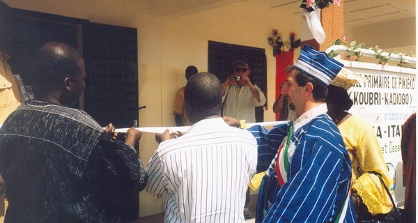 Il mio viaggio inizia, in compagnia di Paolo, il 23 Gennaio, cinque giorni prima gli altri componenti del gruppo: dobbiamo, infatti, organizzare l’inaugurazione della scuola di PIKEOKO, un villaggio a circa 70 km ad est dalla capitale del Burkina Faso, OUAGADOUGOU. Il progetto, finanziato dall’Etruria Sma, è stato portato a conclusione in tempi relativamente brevi e la scuola è già in funzione, con i suoi circa cento scolari e tre insegnanti. Circa un anno, stagione delle piogge compresa, per dare concretezza al sogno di tanti bambini che grazie all’accesso al diritto all’istruzione vedono più reale la possibilità di una vita migliore. La cerimonia ufficiale di inaugurazione si svolge il 29, alla presenza del sinadaco del Comune di Kouri, il signor Felix Compaorè, dei rappresentanti del Comune di Monteriggioni, che ha pagato lo stipendio di un anno del corpo insegnante, l’assessore Claudio Colli ed il consigliere Valerio Violetti, del presidente di Gabnichi onlus, che ha curato la progettazione nonché il coordinamento e la gestione dei lavori, l’ingegnere Luca Venturi, delle autorità politiche e religiose locali, ma, soprattutto, di una numerosa e variopinta rappresentanza di cittadini. Canti, musica , danze e un turbinio di colori manifestano la gioia e la riconoscenza di questa comunità a noi lì presenti e anche a chi, come il collettivo Micifiondo, pur non potendo essere fisicamente presente, ha voluto finalizzare la sua vis comica, mettendo in scena una simpatica commedia musicale al teatro di Castellina Scalo (Monteriggioni) al reperimento dei fondi necessari all’acquisto degli arredi per le aule. Al termine della cerimonia, vista la presenza delle autorità locali, si provvede anche alla stipula di un nuovo contratto con l’impresa del posto, la Nord-Sud Equipements, che costruirà, adiacente alla scuola, un refettorio per gli alunni e, poco distante, una struttura da adibire a centro di aggregazione socioculturale, con sazi per riunioni e corsi di alfabetizzazione per adulti, ma, soprattutto, un piccolo ambulatorio dove iniziare un programma di assistenza medica. L’ingegner Venturi verifica anche la necessità di realizzare un pozzo per l’estrazione dell’acqua potabile e si impegna a preparare un progetto e a discuterne in Associazione.. Il 30 lasciamo di buon ora la capitale in direzione Nord, alla volta di GOROM GOROM,un villaggio situato poco distante dalla fascia sub-Sahariana, a circa 370 km da OUAGADOUGOU, e lungo il tragitto non possiamo non fermarci a visitare uno dei patrimoni dell’Unesco, le singolari ed affascinanti moschee di Bani. Uno dei ricordi più belli che riportai dal mio primo viaggio in Burkina e che mi suscitano sempre forti emozioni.Gli ultimi 70 chilometri di strade. sterrate, ma, soprattutto, i 35-40 gradi di temperatura ci vedono decisamente provati quando arriviamo all’ hotel le Dune, l’albergo costruito a fianco della casa di accoglienza “Casa Matteo” fortemente voluta dai genitori di Matteo Olivieri, toppo prematuramente e tragicamente scomparso. Anche questo viaggio sta volgendo al termine e per questo, nonostante ci costi una levataccia in piena notte, non rinunciamo a vedere l’alba nel deserto e ad un rapido giro al mercato di Gorom Gorom prima di riprendere il cammino verso la capitale. Giovedì 1 Febbraio lasciamo OUAGADOUGOU per raggiungere la città di Fada N’ Gouma, 200 km. più ad est, lungo la strada che porta in Niger, dove visitiamo il centro d’accoglienza TIN-GAABA, una struttura gestita da privati e che accoglie una quarantina di bambini “di strada” ed orfani. È una casetta di appena ottanta metri quadrati , con servizi igienici e cucina in pessime condizioni ; nella quale, quando cala la notte, i piccoli ospiti, per dormire, non possono che stendere a terra un materassino e stringersi l’uno accanto all’altro. Le spese di gestione sono coperte grazie alle donazioni dei visitatori e ad un contributo mensile della ODAS,una organizzazione francese ,ma i bisogni sono sempre superiori alle possibilità! Il ricordo, indelebile, che mi è restato è il grave stato di denutrizione in cui versano i bambini e le pessime condizioni igienico sanitarie. La colletta che abbiamo organizzato al momento non è stata certo risolutiva e per questo ci siamo riproposti, una volta tornati a casa, di non disinteressarci di questa realtà, anche, perché l’incontro con il Sindaco di Fada, avvenuto nel pomeriggio, ci ha lasciato con l’amaro in bocca; abbiamo dovuto riscontare, infatti, l’impossibilità, per le istituzioni pubbliche, di fornire qual si voglia tipo di aiuto. Chissà, ancora una volta la sinergia di forze tra Etruria Sma, Gabnichi, Fondazione Monte dei Paschi e Movimento Shalom e Casa Matteo potrà fare qualcosa di buono?! Tutto cio’ è attualmente in fase di studio ,ma il ricordo di quei bambini a FADA ci dà tanta carica per arrivare al compimento del nostro intento. L’ultimo giorno l’abbiamo dedicato all’imponente cava di granito nei pressi della capitale Una voragine, uno scavo a cielo aperto che degrada verso il basso in cerchi concentrici per arrivare giù, ai livelli più’ bassi, dove viene estratto il granito. • Ogni fase della lavorazione è compiuta ancora interamente a mano, senza l’aiuto di qualsivoglia macchina, mentre il granito viene sbriciolato in blocchi trasportabili usando il calore dei pneumatici incendiati. Sembra un girone dell’inferno dantesco. Asini carichi di granito risalgono dal fondo della cava, con passo lento, fino al piano stradale; nel piazzale, in alto, si procede alla frantumazione della pietra o con il martello, i più fortunati, o, la maggior parte, sbattendo pietra contro pietra. Gli uomini provvedono all’estrazione, mentre sul piazzale si trovano donne e bambini .E pensare che per queste persone non si tratta di un posto di lavoro,ma di un posto dove vivere, notte e giorno, giorno dopo giorno, sotto un riparo improvvisato,e il lavoro